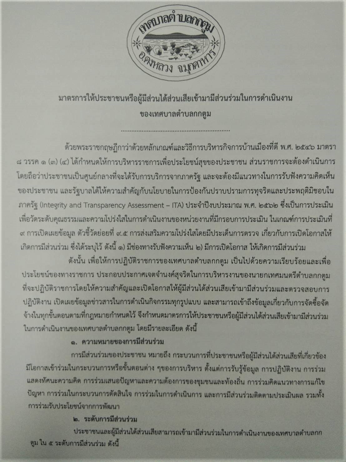 มาตรการให้ประชาชนหรือผู้มีส่วนได้เสียเข้ามามีส่วนร่วมในการดำเนินงานของเทศบาลตำบลกกตูม