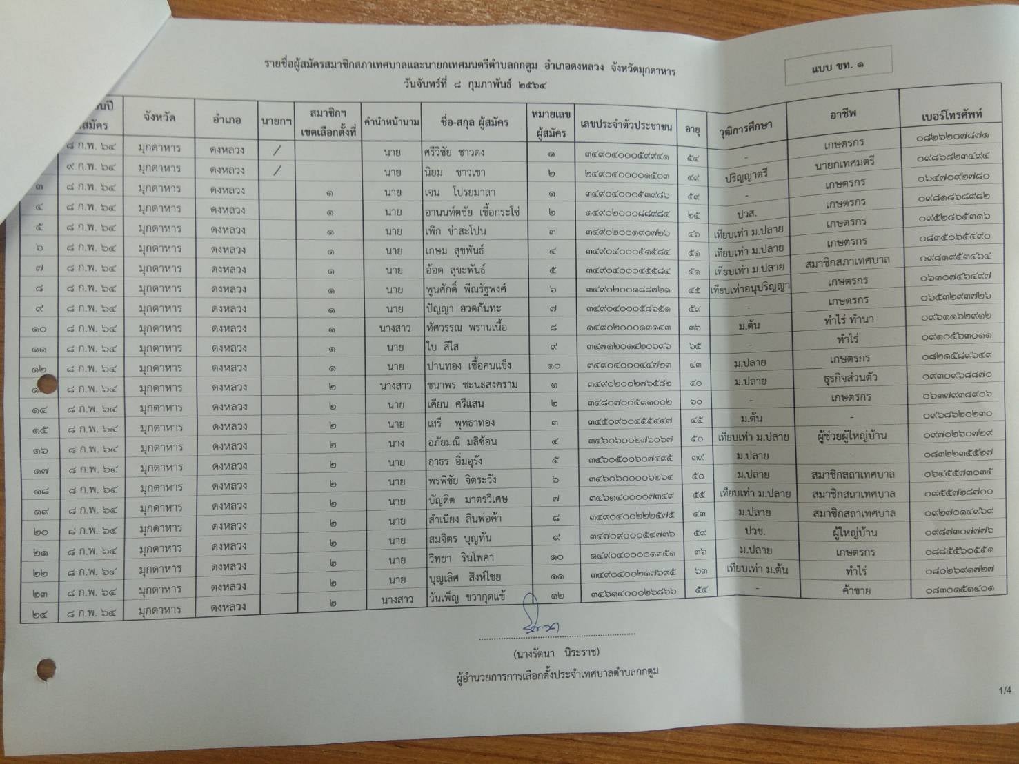 รายงานผลการรับสมัครสมาชิกสภาเทศบาลและนายกเทศมนตรีตำบลกกตูม วันที่ ๘ กุมภาพันธ์ ๒๕๖๔