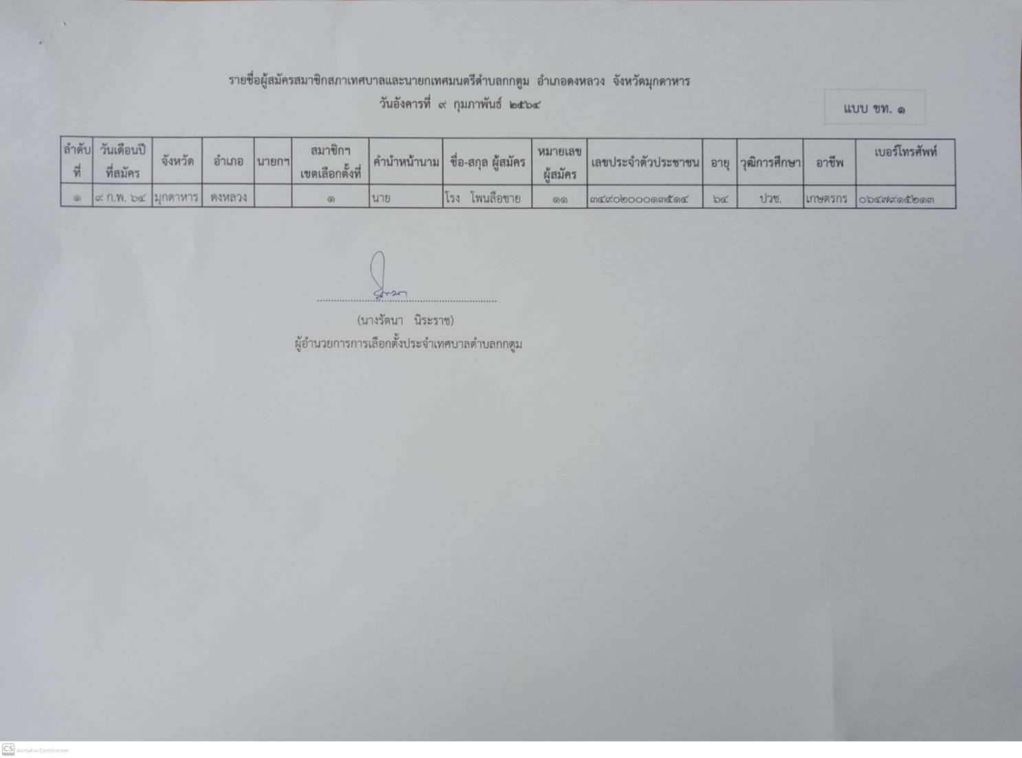 รายงานผลการรับสมัครสมาชิกสภาเทศบาลและนายกเทศมนตรีตำบลกกตูม วันที่ ๙ กุมภาพันธ์ ๒๕๖๔